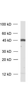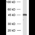 50 µg specific antibody, lyophilized. Affinity purified with the immunogen. Albumin was added for stabilization. For reconstitution add 50 µl H2O to get a 1mg/ml solution in PBS. Then aliquot and store at -20°C to -80°C until use. Antibodies should be stored at +4°C when still lyophilized. Do not freeze! |