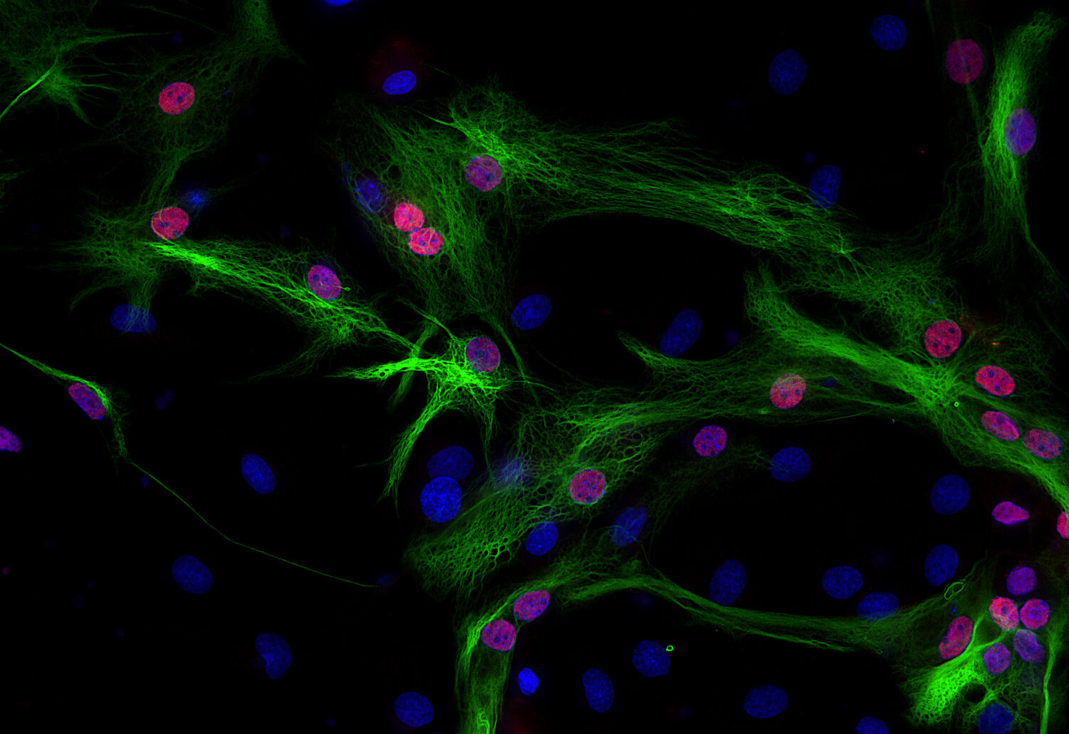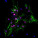 Albumin and azide were added for stabilization. For reconstitution add 50 µl H2O to get a 1mg/ml solution in PBS. Either add 1:1 (v/v) glycerol, then aliquot and store at -20°C until use, or store aliquots at -80°C without additives. Reconstitute immediately upon receipt! Avoid bright light when working with the antibody to minimize photo bleeching of the fluorescent dye. |