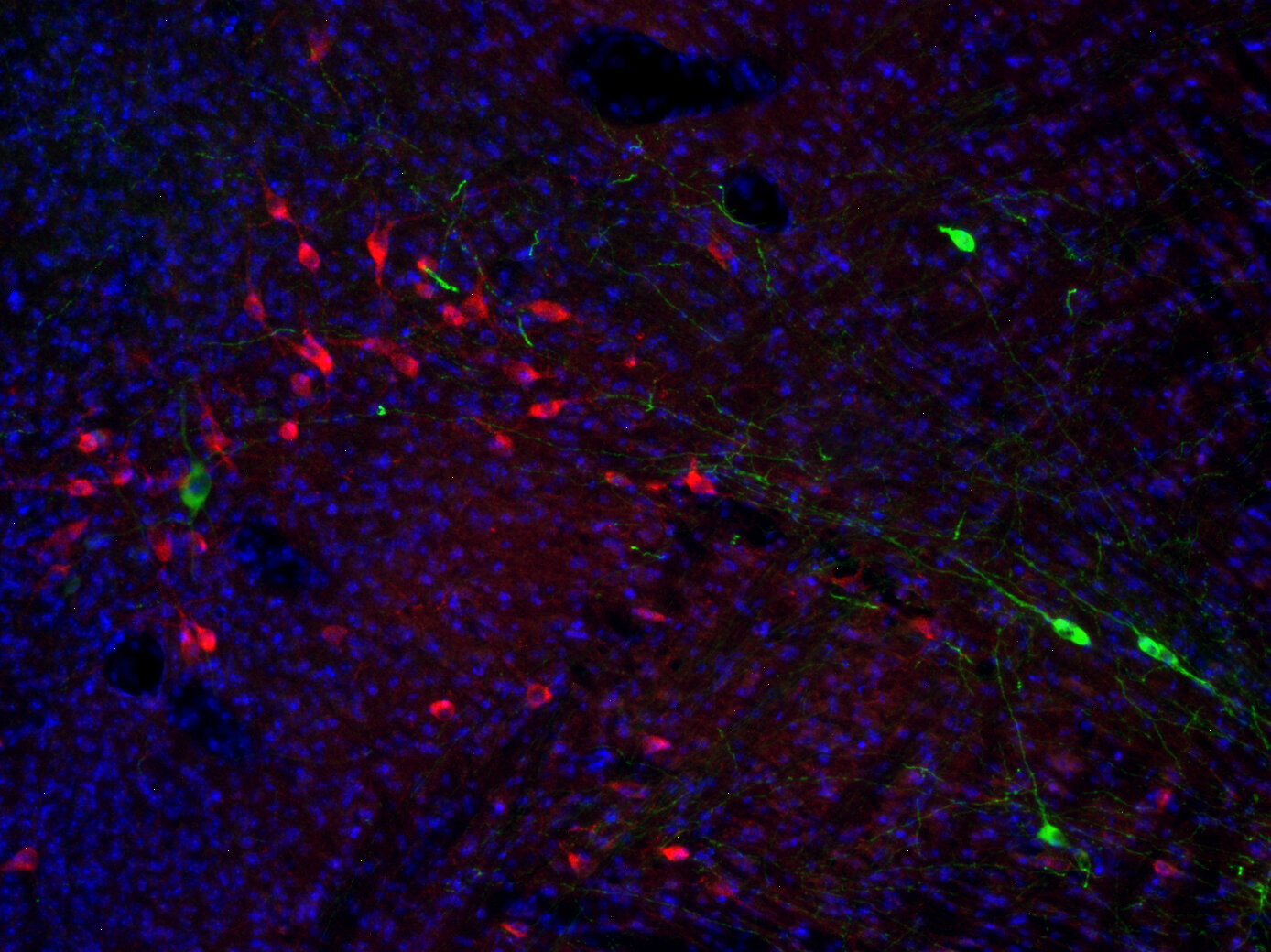 In mammals, serotonin biosynthesis occurs predominantly in neurons which originate in the Raphe nuclei of the brain.