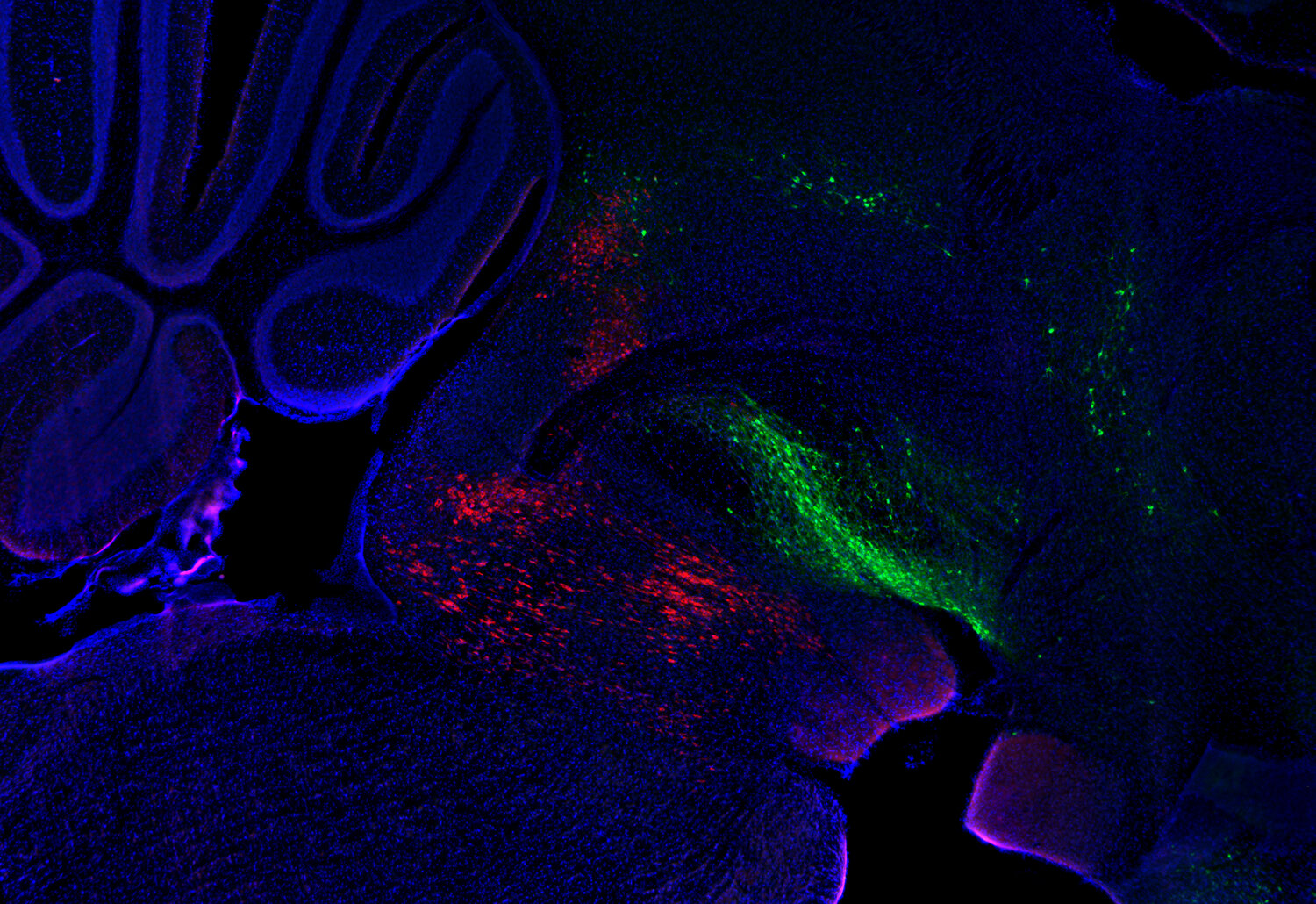 In mammals, serotonin biosynthesis occurs predominantly in neurons which originate in the Raphe nuclei of the brain.