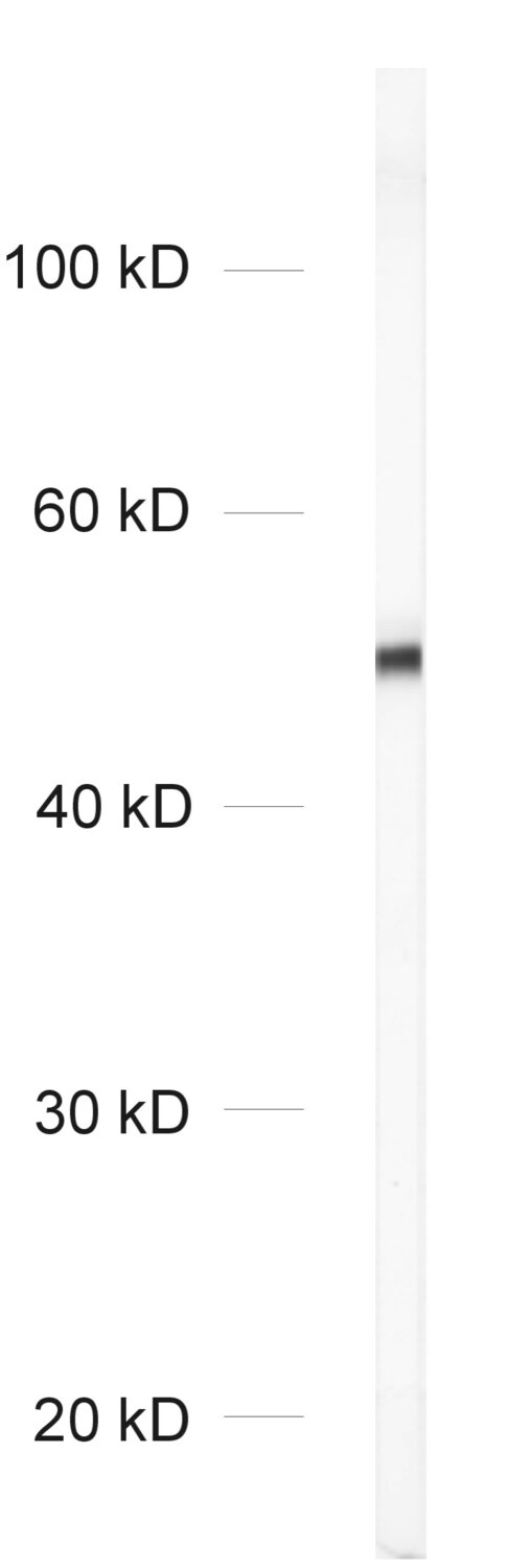 50 µg specific antibody, lyophilized. Affinity purified with the immunogen. Albumin and azide were added for stabilization. For reconstitution add 50 µl H2O to get a 1mg/ml solution in PBS. Then aliquot and store at -20°C to -80°C until use. Antibodies should be stored at +4°C when still lyophilized. Do not freeze! |