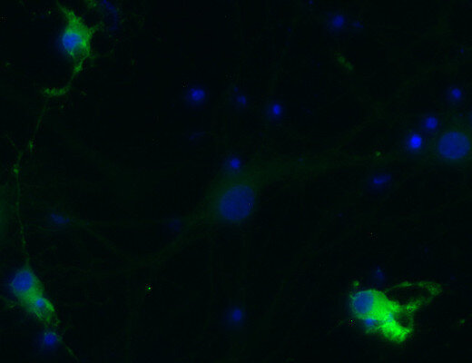Immunocytochemistry (ICC) on 4% PFA fixed cells. Immunoreactivity is usually revealed by fluorescence. Some antibodies require special fixation methods. For details, please refer to the “Remarks” section.