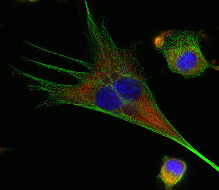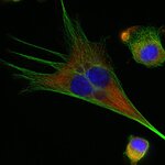 Immunocytochemistry (ICC) on 4% PFA fixed cells. Immunoreactivity is usually revealed by fluorescence. Some antibodies require special fixation methods. For details, please refer to the “Remarks” section.