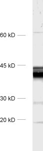 50 µg specific antibody, lyophilized. Affinity purified with the immunogen. Albumin was added for stabilization. For reconstitution add 50 µl H2O to get a 1mg/ml solution in PBS. Then aliquot and store at -20°C to -80°C until use. Antibodies should be stored at +4°C when still lyophilized. Do not freeze!