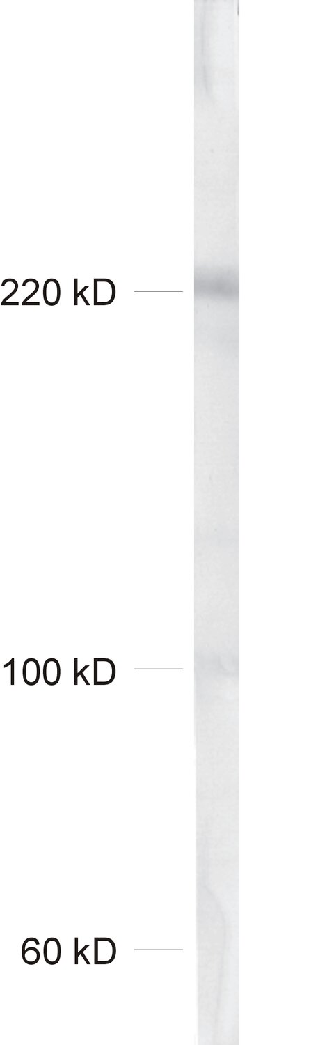 | Immunogen | Recombinant protein corresponding to residues near the carboxy terminus of mouse Ankyrin G. (UniProt Id: G5E8K5-1) |