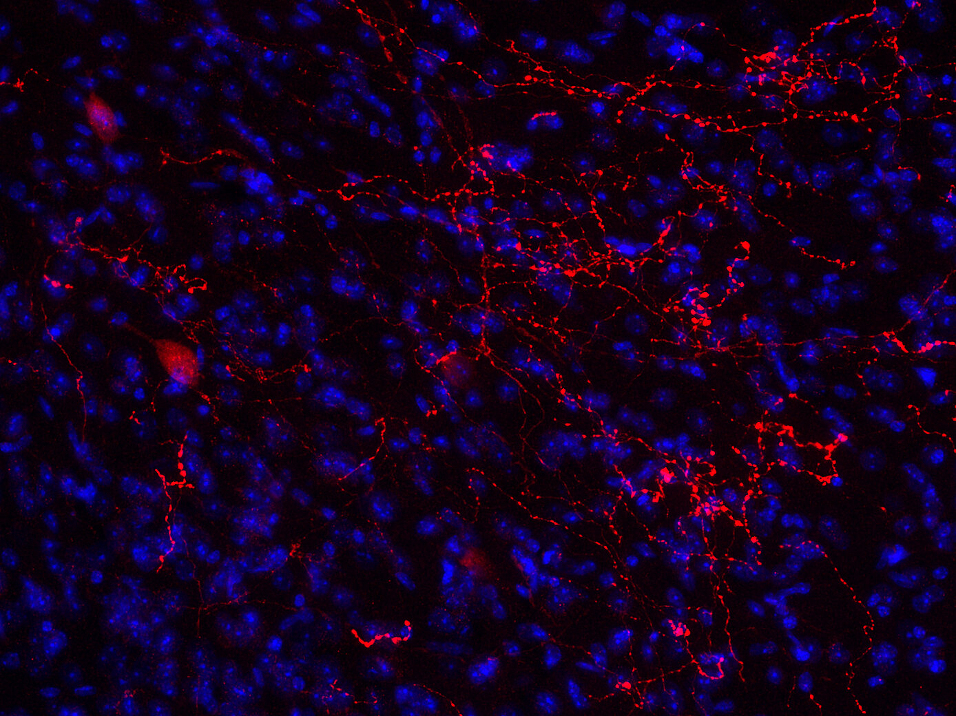 Oxytocin is also produced by some neurons of the hypothalamus that project to other parts of the brain and to the spinal cord.