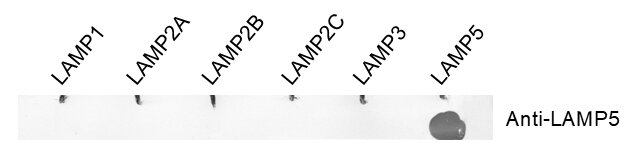 | Immunogen | Synthetic peptide corresponding to the carboxy terminal part of mouse LAMP5 (UniProt Id: Q9D387) |