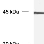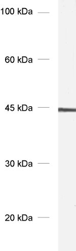50 µg specific antibody, lyophilized. Affinity purified with the immunogen. Albumin was added for stabilization. For reconstitution add 50 µl H2O to get a 1mg/ml solution in PBS. Then aliquot and store at -20°C to -80°C until use. Antibodies should be stored at +4°C when still lyophilized. Do not freeze! |