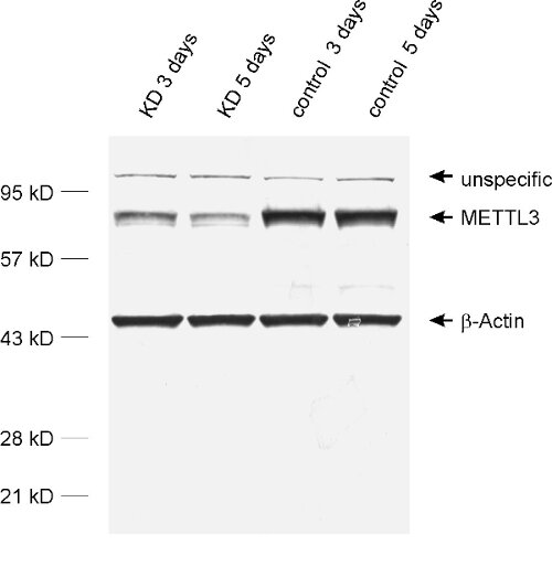 | Immunogen | Recombinant protein corresponding to AA 2 to 118 from mouse METTL3 (UniProt Id: Q8C3P7) |