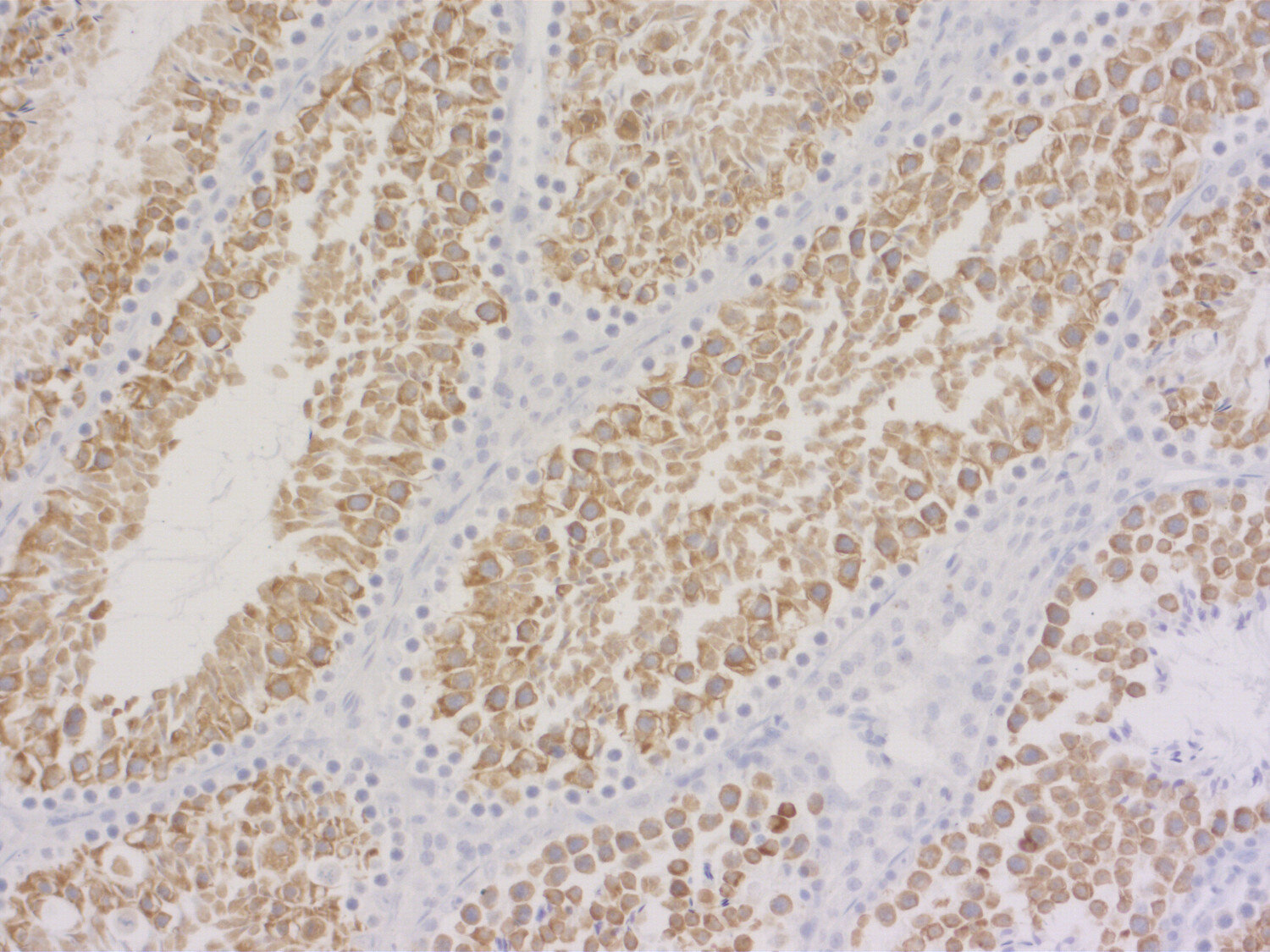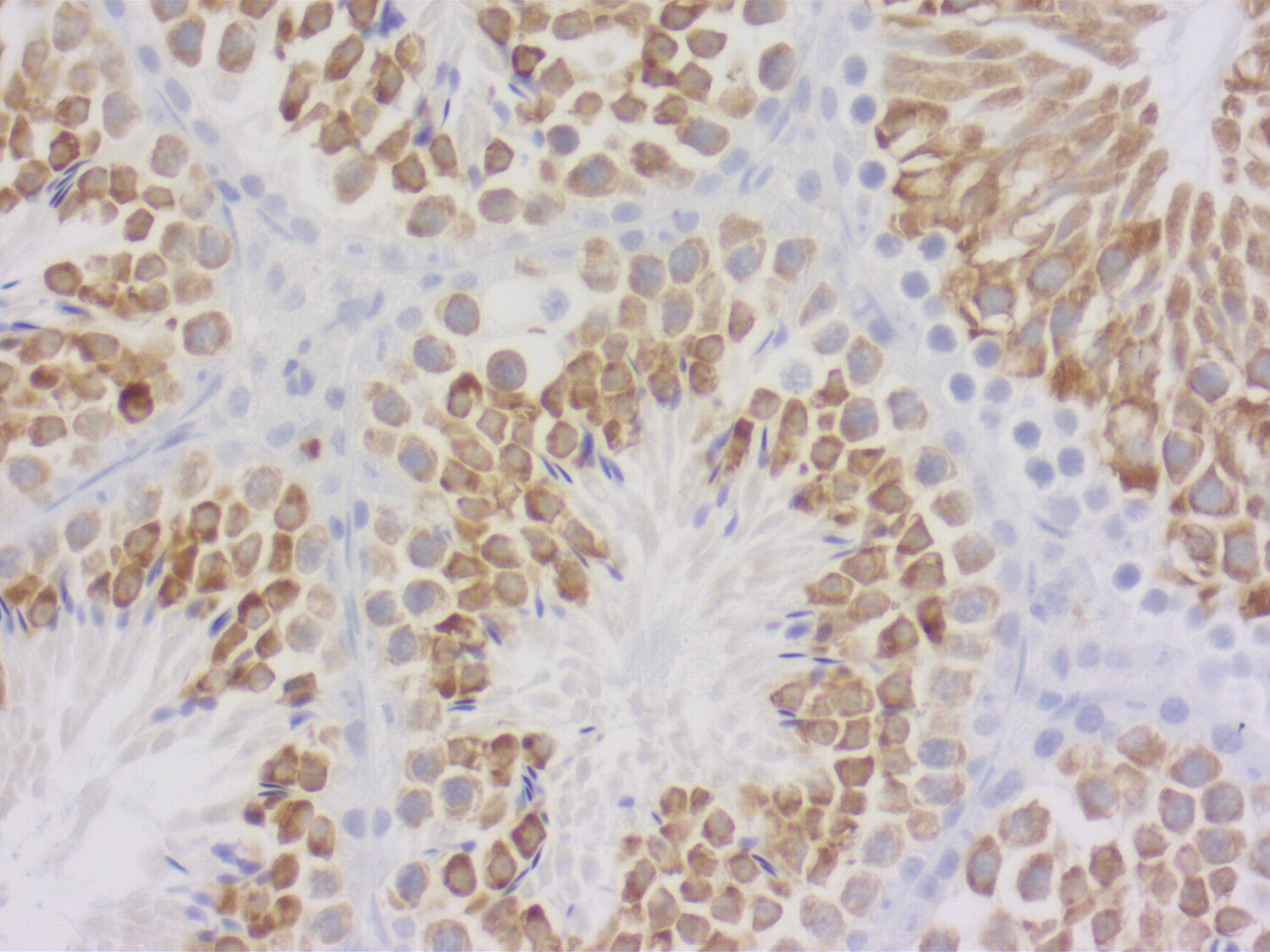 50 µg specific antibody, lyophilized. Affinity purified with the immunogen. Albumin was added for stabilization. For reconstitution add 50 µl H2O to get a 1mg/ml solution in PBS. Then aliquot and store at -20°C to -80°C until use. Antibodies should be stored at +4°C when still lyophilized. Do not freeze! |