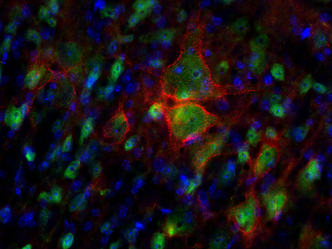Neurocan is a secreted brain-specific chondroitin sulfate proteoglycan (CSPG) whose expression and proteolytic cleavage are developmentally regulated (1). It belongs to the lectican family, is a component of the extracellular matrix and interacts with numerous molecules like Hyalorunan, Tenascins, N-CAM and more (2).