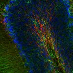 Opalin also called Tmem10 is a transmembrane protein detected specifically in mammalian oligodendrocytes. Opalin homologs are found only in mammals and not in the genome sequences of other animal classes (1). Deficient mice are born the expected Mendelian ratio and have a normal body shape and weight. No obvious abnormalities in gross anatomy or major myelin protein components nor in the compartment of myelinated axons and oligodendrocyte maturation. Nevertheless, deficient mice display increased exploratory activity in a novel environment (2).