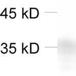 50 µg specific antibody, lyophilized. Affinity purified with the immunogen. Albumin and azide were added for stabilization. For reconstitution add 50 µl H2O to get a 1mg/ml solution in PBS. Then aliquot and store at -20°C to -80°C until use. Antibodies should be stored at +4°C when still lyophilized. Do not freeze! |
