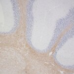 Opalin also called Tmem10 is a transmembrane protein detected specifically in mammalian oligodendrocytes. Opalin homologs are found only in mammals and not in the genome sequences of other animal classes (1). Deficient mice are born the expected Mendelian ratio and have a normal body shape and weight. No obvious abnormalities in gross anatomy or major myelin protein components nor in the compartment of myelinated axons and oligodendrocyte maturation. Nevertheless, deficient mice display increased exploratory activity in a novel environment (2).
