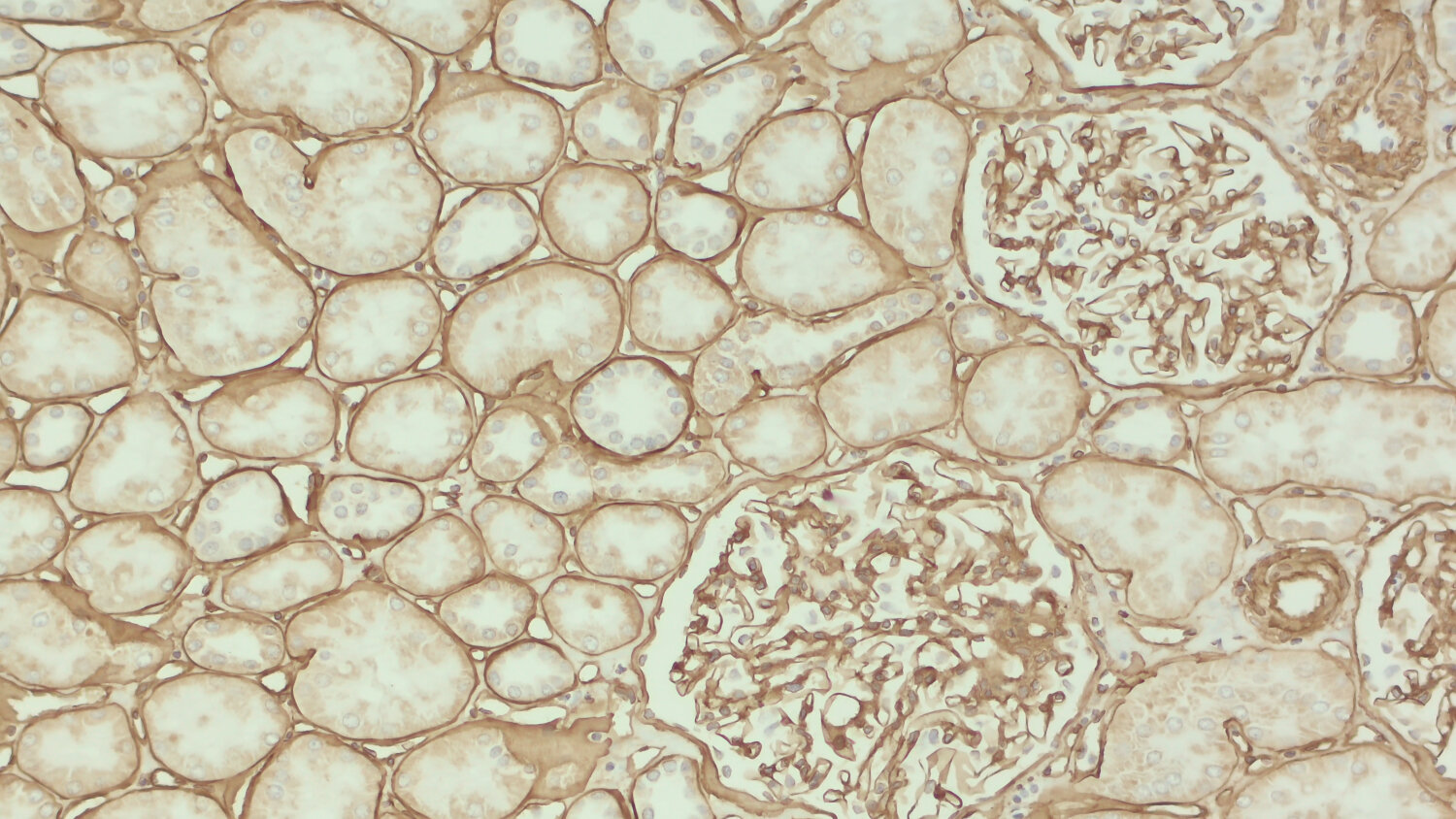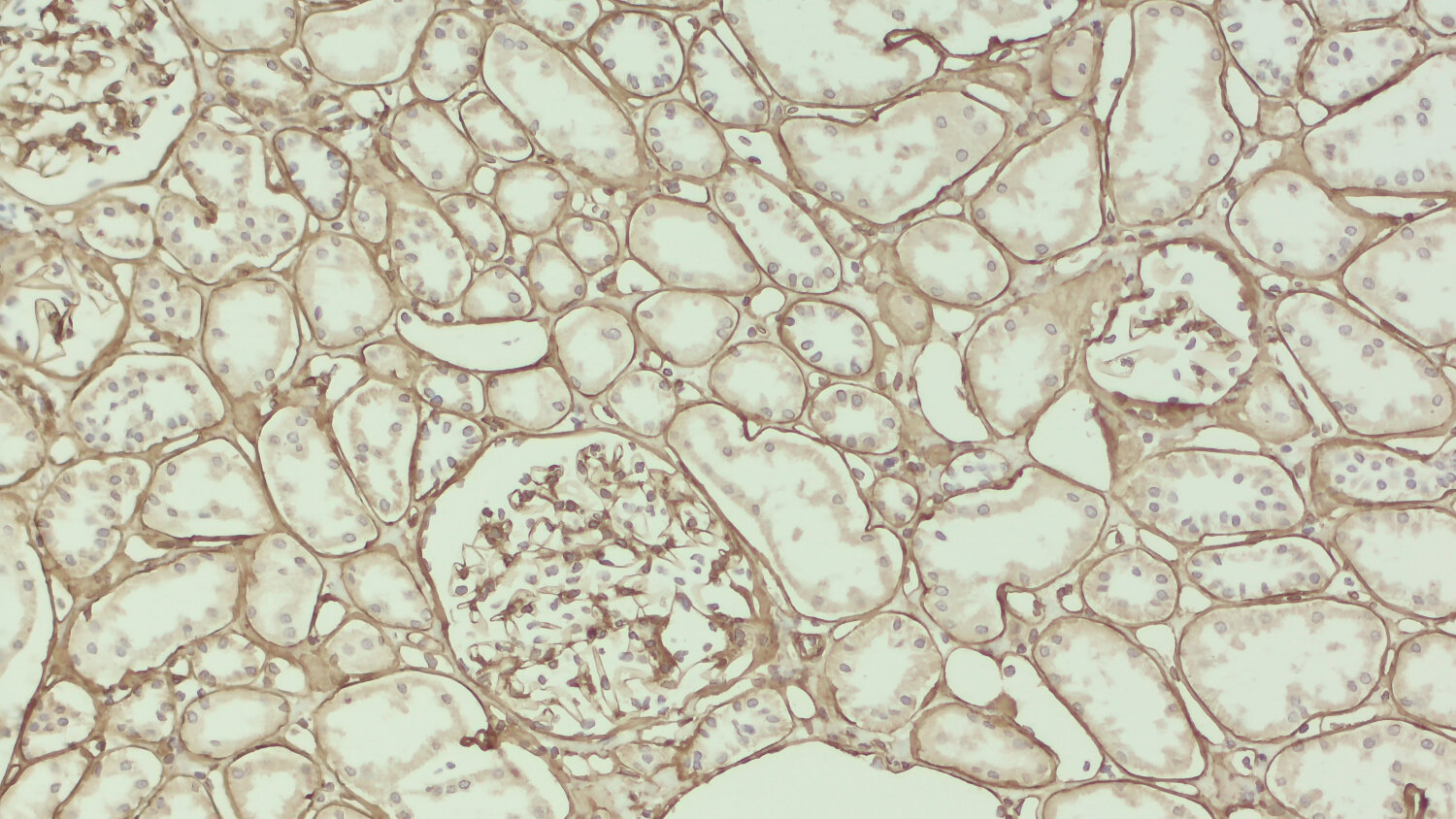 | Immunogen | Human heterotrimeric Collagen type IV containing two α 1-like (UniProt Id: P02462) and one α 2-like (UniProt Id: P08572) chains. |