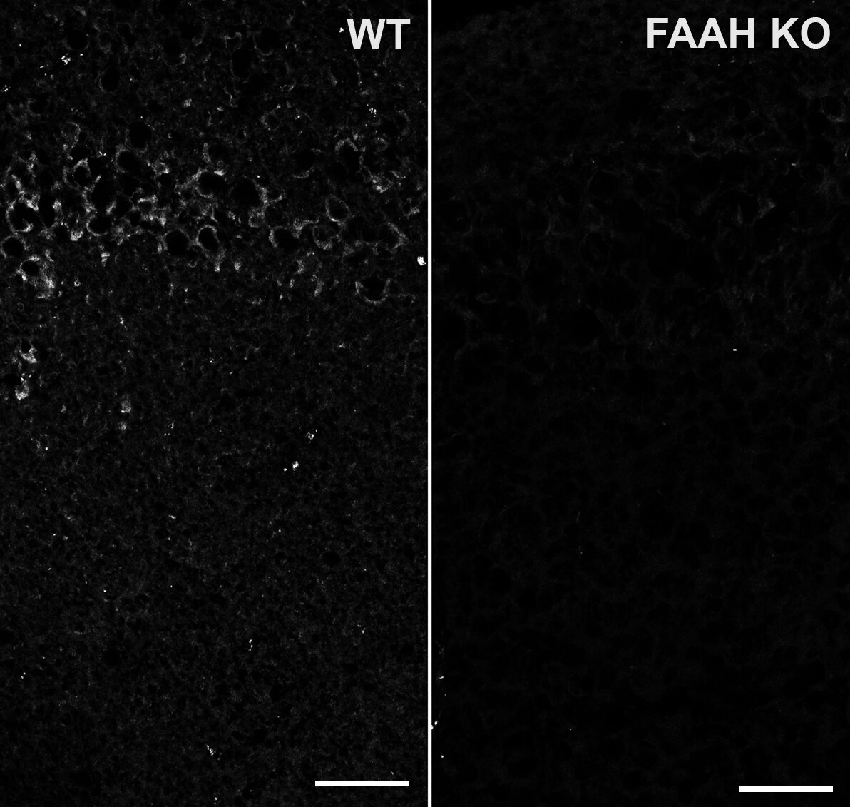 N-acyl amino acids are a group of bioactive lipids with transmitter function (1) that consist of a fatty acid tail conjugated to an amino acid head group (amidated lipids or fatty acid amides). Fatty-acid amide hydrolase 1 (FAAH 1) is an ER associated transmembrane protein (2) that catalyzes the hydrolysis and thereby inactivation of different endogenous amidated lipids to their corresponding fatty acids. Prominent examples are the appetite stimulating endocannabinoid anandamide (3) as well as oleamid, a fatty acid amide involved in sleep regulation (4). Intracellular, membrane located FAAH1 and the extracellular N-acyl amino acid synthase/hydrolase PM20D1 cooperate in the hydrolysis of amino acid-conjugated fatty acids and show overlapping but distinct substrate specificity (2).