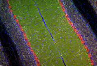 Neurobeachin, also referred to as NBEA, is a large ~330 kDa brain-specific protein that belongs to the BEACH (beige and Chediak-Higashi) family. The protein has been shown to locate to tubulovesicular neuronal endomembranes near the trans-Golgi synapses, but also throughout the cell. Neurobeachin binds to protein kinase A and after adding GTPγS concentrates at Golgi-near membranes.