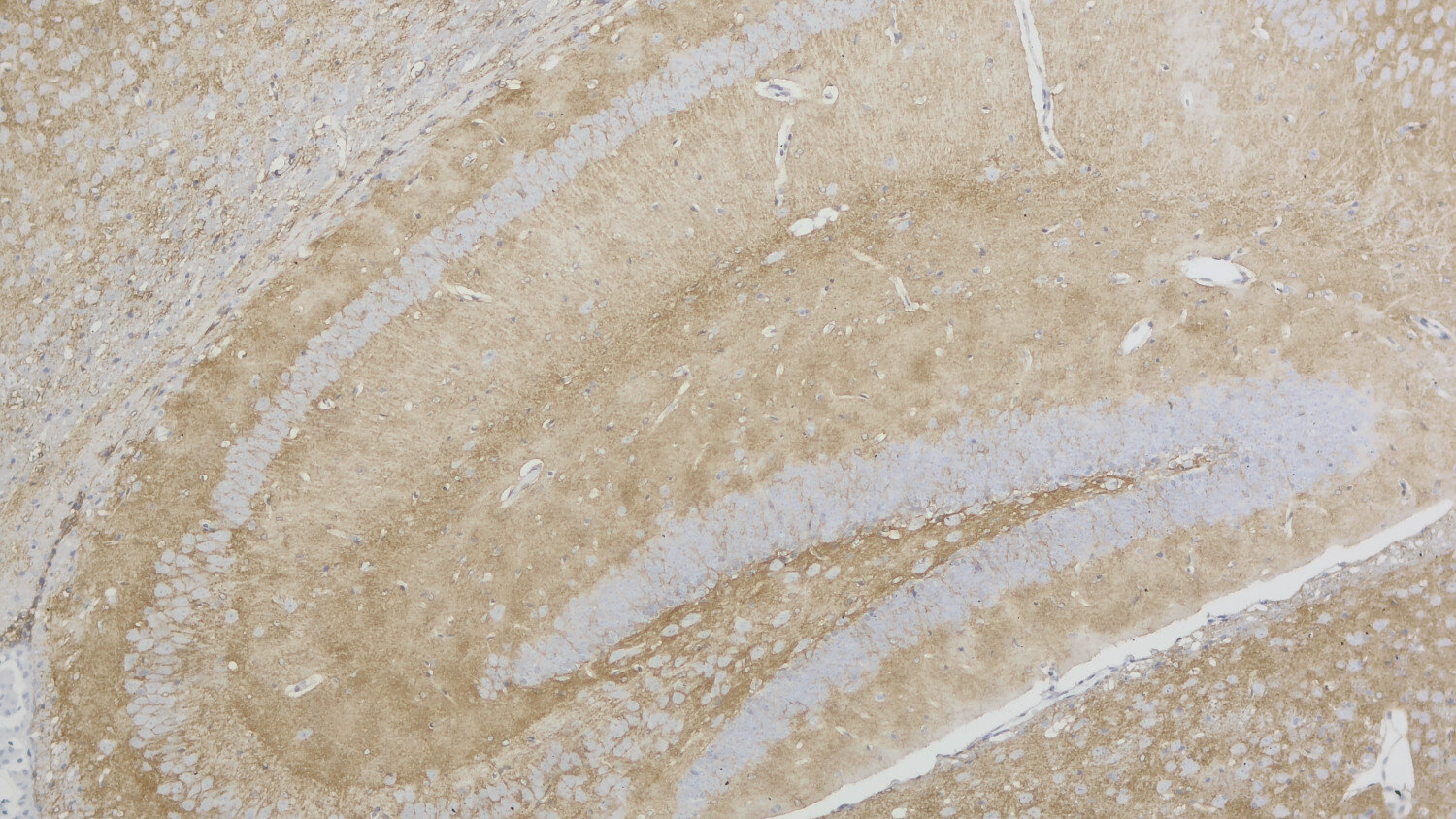 ATP1A2, also referred to as Sodium/potassium-transporting ATPase subunit alpha-2, is the catalytic subunit of the enzyme, which catalyzes the hydrolysis of ATP coupled with the exchange of sodium and potassium ions across the plasma membrane. This process is essential for maintaining the asymmetrical distribution of Na+ and K+ ions and the resting membrane potential, thereby providing the energy needed for active nutrient transport.