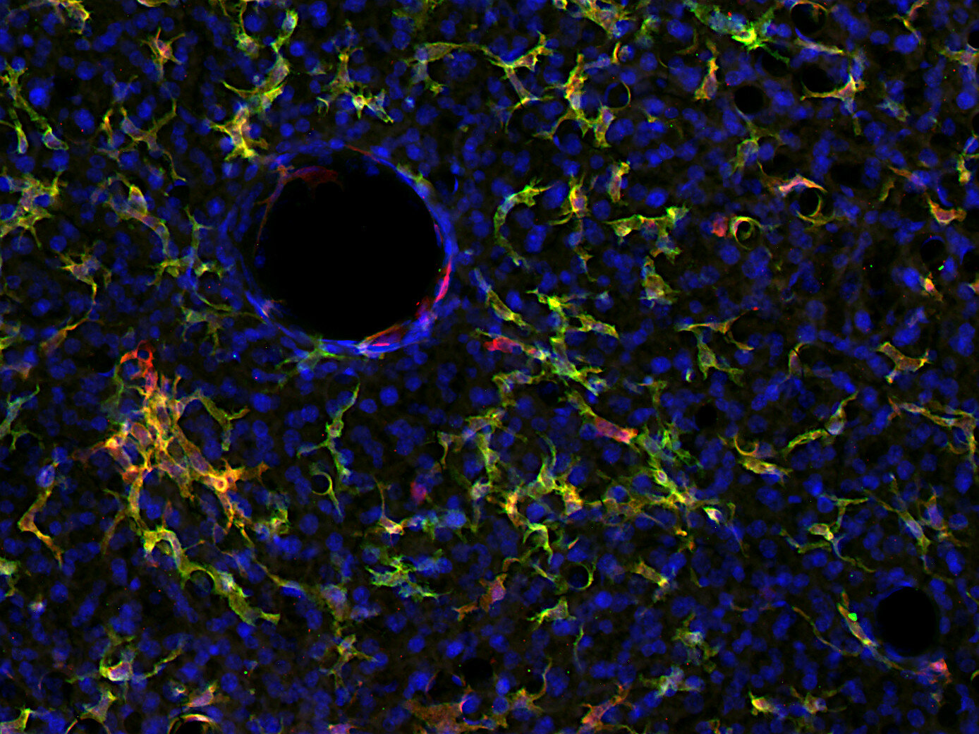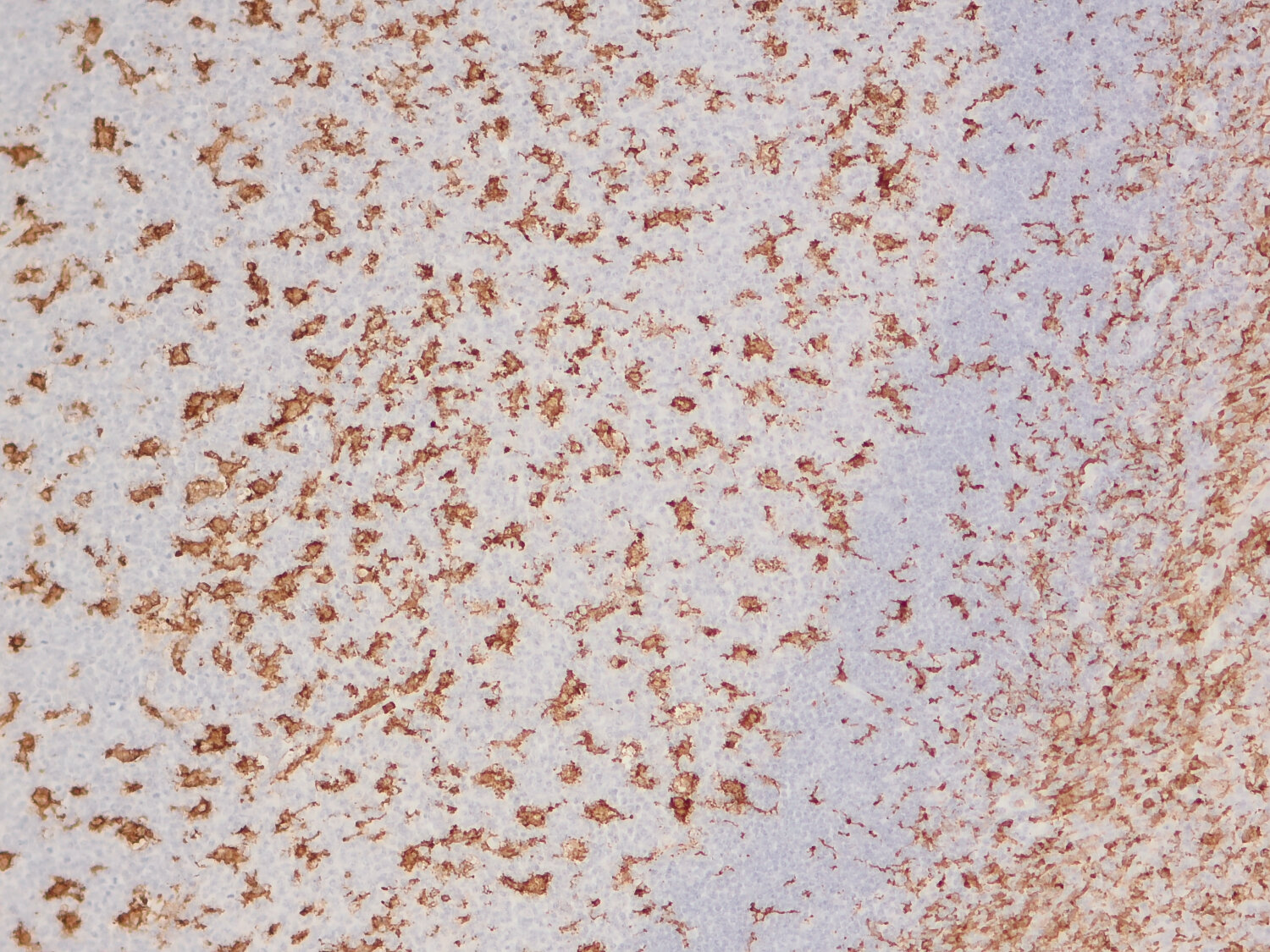 Microglia represent the resident macrophages in the nervous system and are the smallest of the glial cells with cell bodies of only 2-5 µm in diameter. In the CNS IBA1 upregulation is associated with neuroinflammatory response (3).