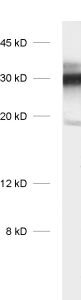 100 µg purified IgG, lyophilized. Albumin and azide were added for stabilization. For reconstitution add 100 µl H2O to get a 1mg/ml solution in PBS. Then aliquot and store at -20°C to -80°C until use. Antibodies should be stored at +4°C when still lyophilized. Do not freeze! |