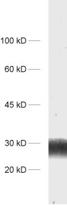 100 µg purified IgG, lyophilized. Azide was added before lyophilization. For reconstitution add 100 µl H2O to get a 1mg/ml solution in PBS. Then aliquot and store at -20°C to -80°C until use. Antibodies should be stored at +4°C when still lyophilized. Do not freeze!