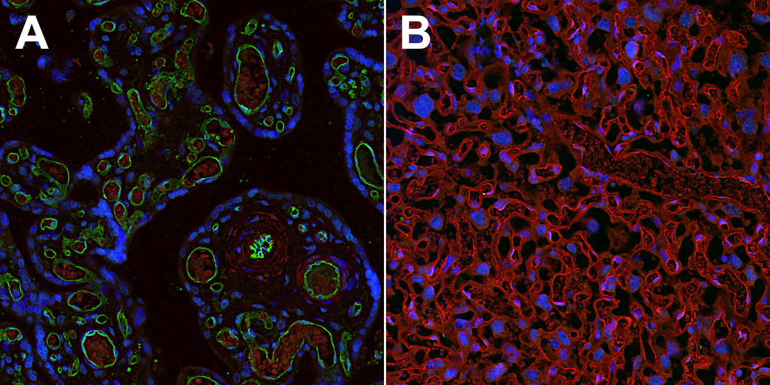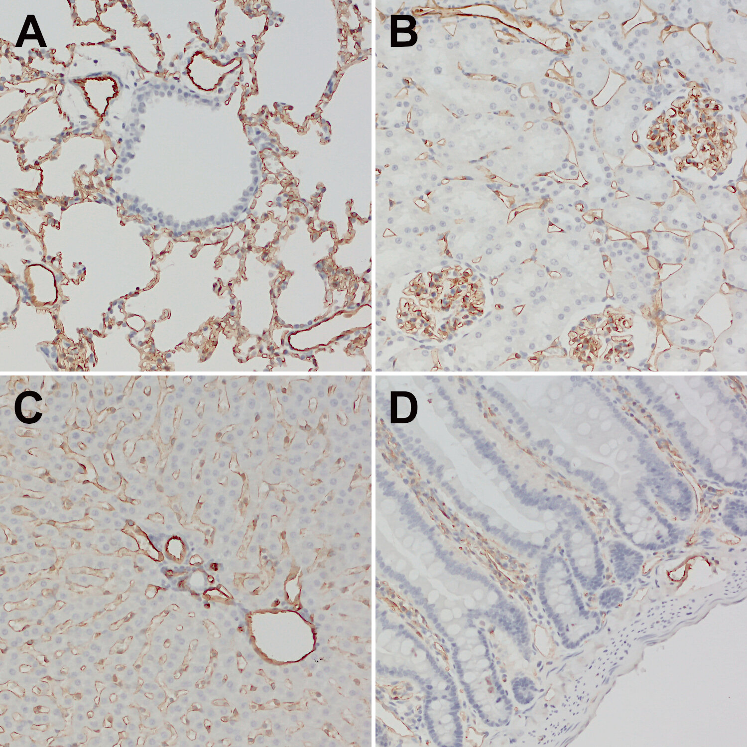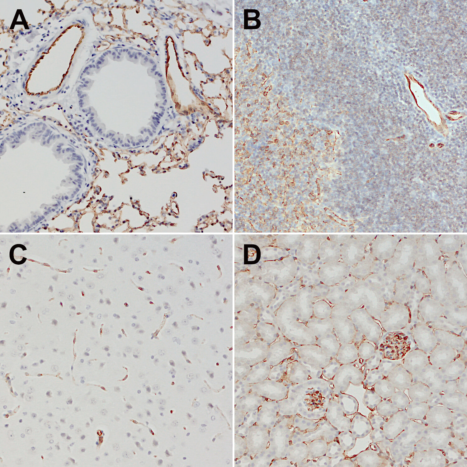 CD31 or platelet/endothelial cell adhesion molecule-1 (PECAM-1) is a cell adhesion molecule that contains a single trans-membrane domain and 6 Ig-like C2-type (immunoglobulin-like) domains (1). It is expressed on the surface of leukocytes and platelets and is primarily concentrated at endothelial cell-cell junctions (2). CD31 plays a role in several important biological processes, such as vascular development, maintenance of vascular endothelial barrier function and leukocyte emigration at inflammatory sites. In addition, CD31 promotes cancer metastasis by inducing epithelial-mesenchymal transition (3).