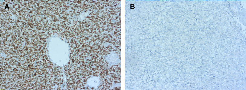 STAT 6 (Signal Transducer and Activator of Transcription 6) is a member of the STAT family of transcription factors. Gene fusion of NGFI-A binding protein 2 (NAB 2) with STAT 6, which converts the transcriptional repressor NAB 2 into a transcriptional activator, was detected as driver mutation in solitary fibrous tumors (SFT). The NAB 2-STAT 6 fusion shows a consistent nuclear reallocation in STAT 6 immunohistochemistry. STAT 6 is a highly sensitive and specific immunohistochemical marker for most SFT and can be helpful to distinguish this tumor type from histologic mimics.