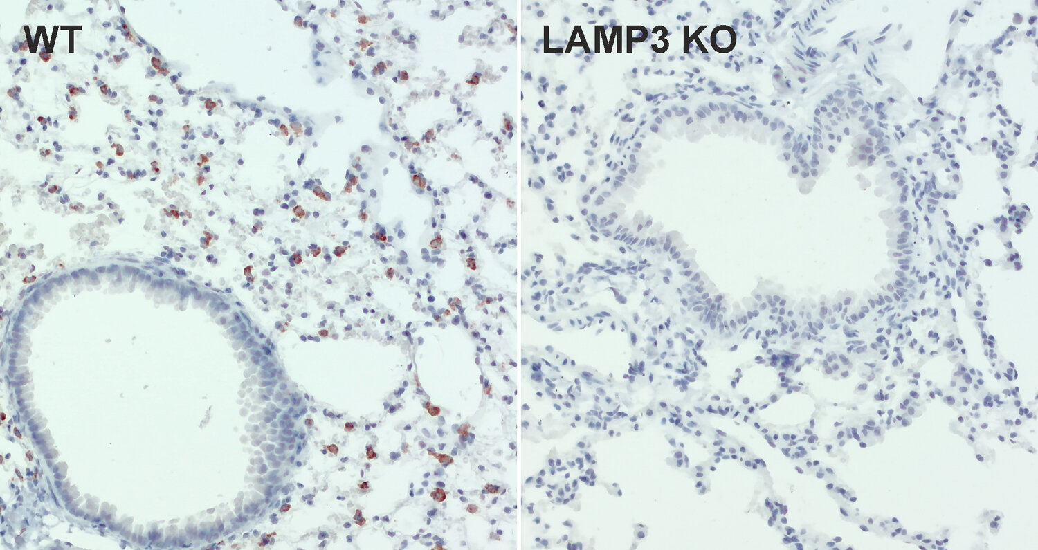 LAMP 3 (lysosome-associated membrane glycoprotein 3), also referred to as DC-LAMP (dendritic cell LAMP) or CD 208, is a member of the LAMP protein family and a single-pass type I transmembrane protein that can be variably glycosylated. It is specifically expressed in lung type II pneumocytes and by activated human dendritic cells (1, 2).