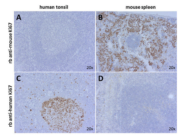 Reacts with: human (P46013). No signal: mouse (E9PVX6), rat (D4A0Y6). Other species not tested yet. |