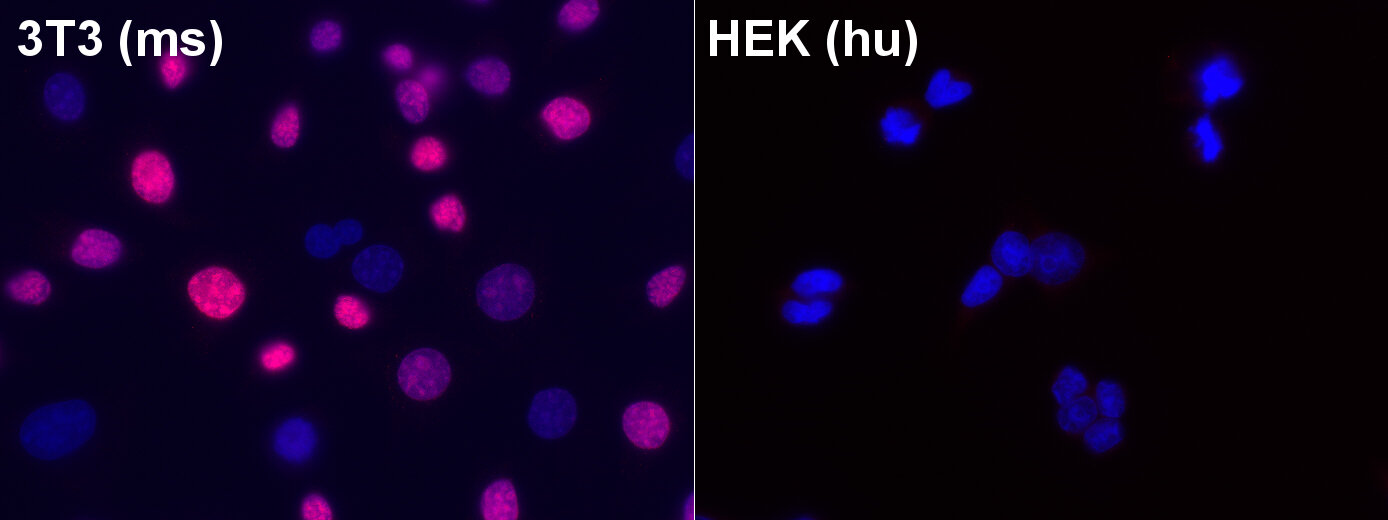 Reacts with: mouse (E9PVX6). No signal: human (P46013), rat (D4A0Y6). Other species not tested yet. |