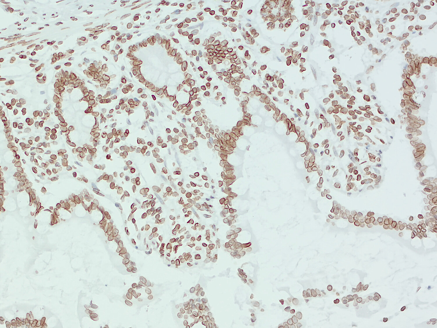 This antibody is a chimeric antibody based on the monoclonal rat antibody clone 12G6. The constant regions of the heavy and light chains have been replaced by rabbit specific sequences. Therefore, the antibody can be used with standard anti-rabbit secondary reagents. The antibody has been expressed in mammalian cells. |