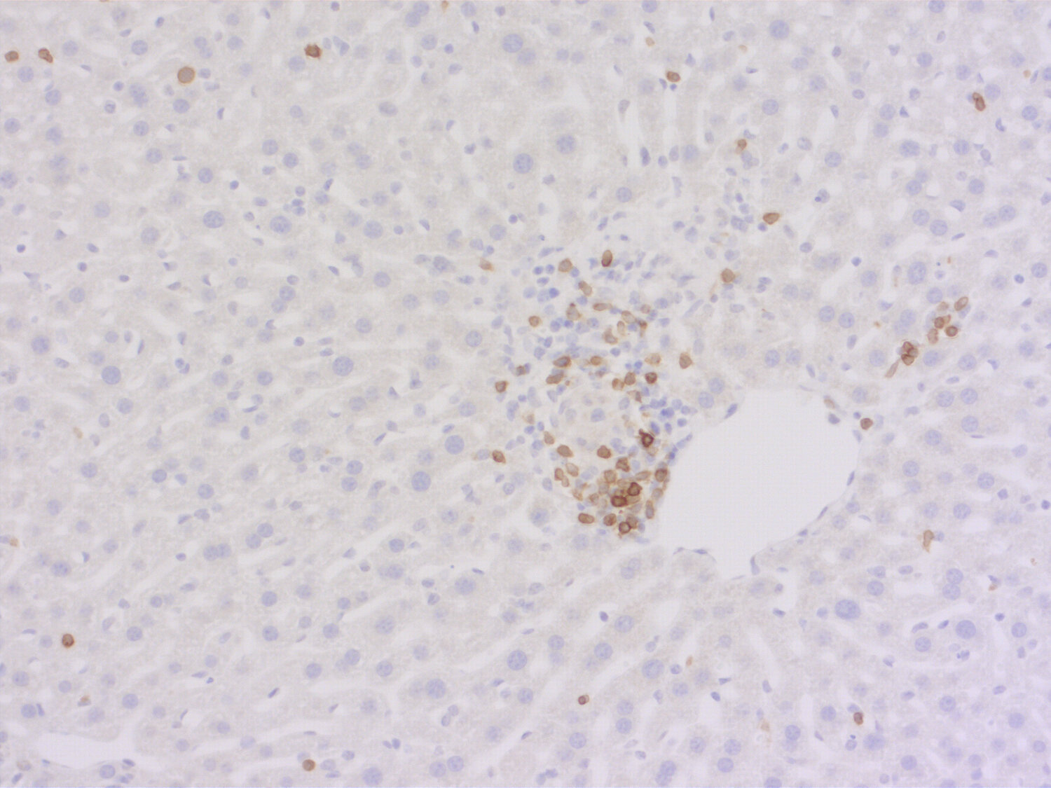 Cluster of differentiation 3 (CD3) is a defining feature of cells belonging to the T cell lineage. It is composed of the four subunits CD3 gamma, CD3 delta, CD3 epsilon (CD3e) and CD3 zeta, that form a multimeric protein complex. This complex associates with the T cell receptor (TCR) and serves as a T cell co-receptor. The CD3 molecules contain immunoreceptor tyrosine-based activation motifs (ITAMs) that serve as the nucleating point for the intracellular signal transduction machinery upon TCR engagement. TCR/CD3 signaling is central to the initiation of antigen-specific T cell responses to pathogens and vaccines, as well as transplanted tissues, tumors, and autoantigens. CD3 is initially expressed in the cytoplasm of pro-thymocytes. During T cell maturation the expression of CD3 migrates to the cell-membrane. The specific appearance at all stages of T cell development make CD3 a useful immunohistochemical marker for T cells in tissue sections. In the clinical setting, CD3 is a relevant marker for the classification of malignant lymphomas and leukemias as the antigen remains present in almost all T-cell lymphomas and leukemias. It can also be used to detect T cells in celiac disease, lymphocytic and collagenous colitis.