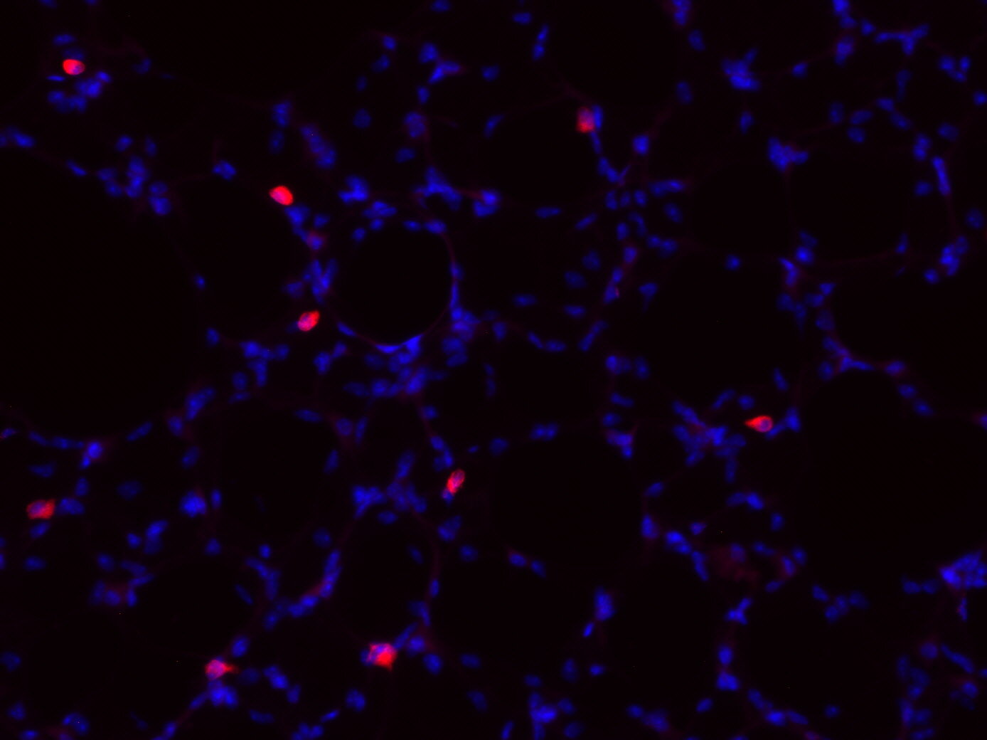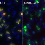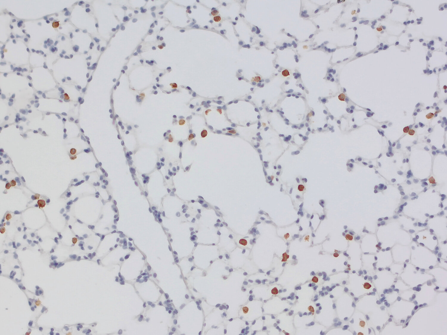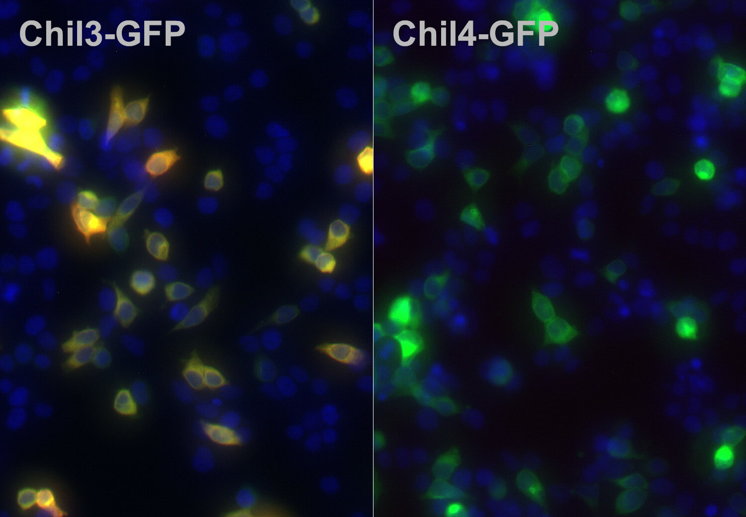 Chitinase-like protein 3 (Chil3), commonly referred to as YM1, is a rodent-specific secreted glycoprotein that belongs to the chitinase-like protein (CLP) family, sharing structural similarity with true chitinases but lacking enzymatic activity. It is predominantly expressed by alternatively activated (M2) macrophages, eosinophils, and neutrophils in mice, particularly under type 2 immune conditions such as allergic inflammation, parasitic infection, and tissue repair (1). Chil3 / YM1 expression is strongly induced by IL-4 and IL-13, hallmark cytokines of Th2-driven responses. Alongside Arginase-1 (Arg1) and Fizz1 (Retnla), Chil3 / YM1 is commonly used as a biomarker of M2 macrophage polarization in murine models (2). In healthy adult mice, Chil3 / YM1 is constitutively expressed in alveolar macrophages and neutrophils in the lung and in immature neutrophils in the spleen and bone marrow (1). Its isotype Chil4 / YM2 shows a different expression pattern and is mainly expressed in the stomach (3). In the central nervous system microglia can also induce Chil3 / YM1 expression under specific inflammatory conditions, e.g. after stroke (4).