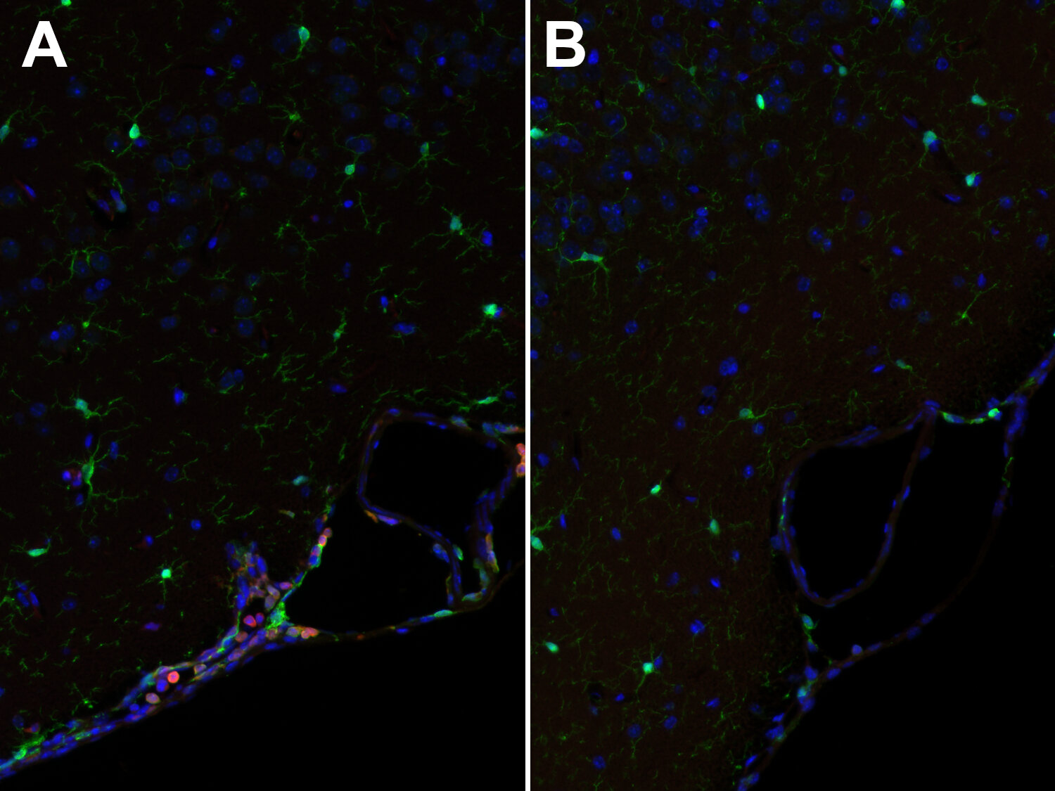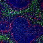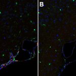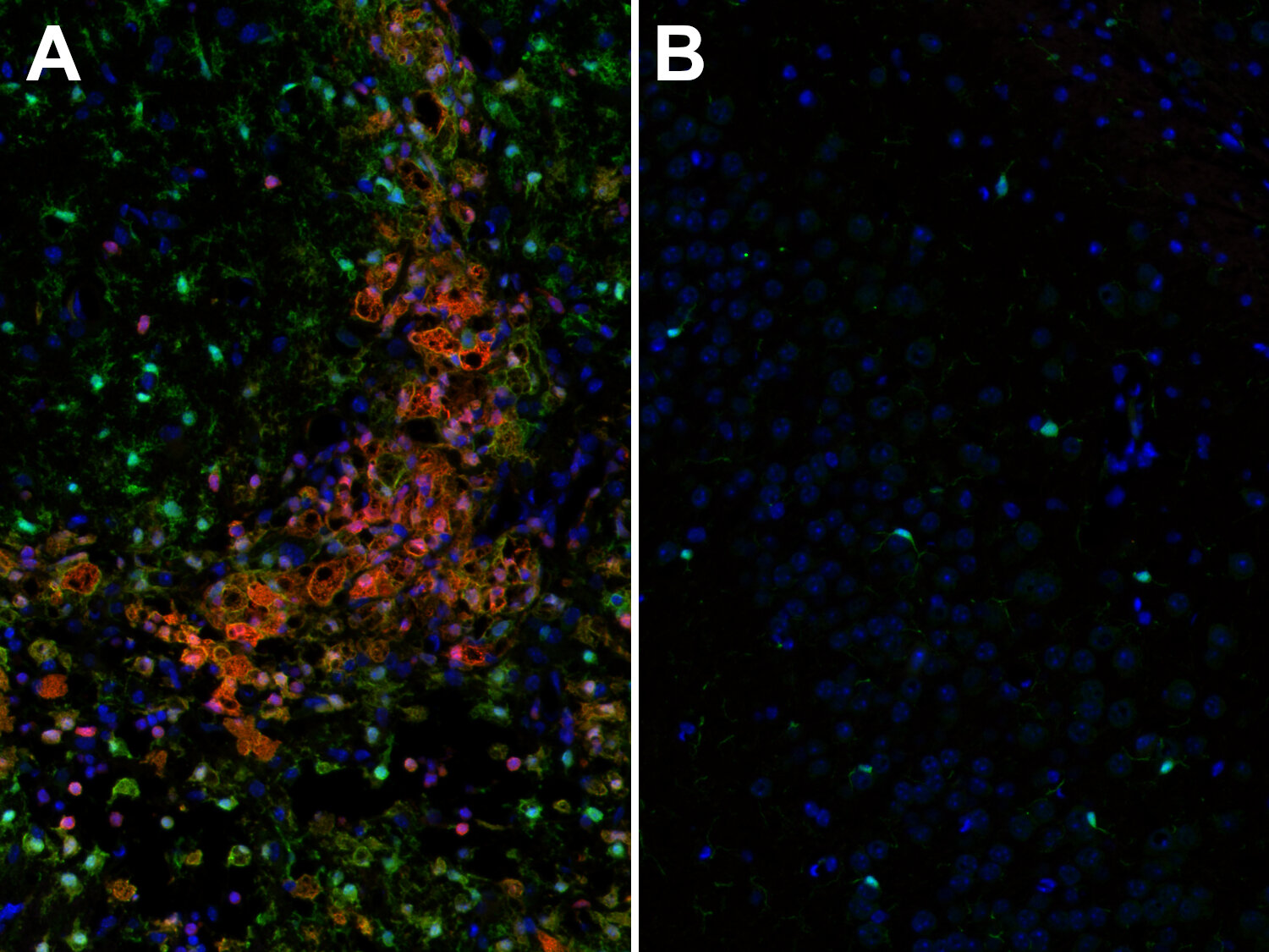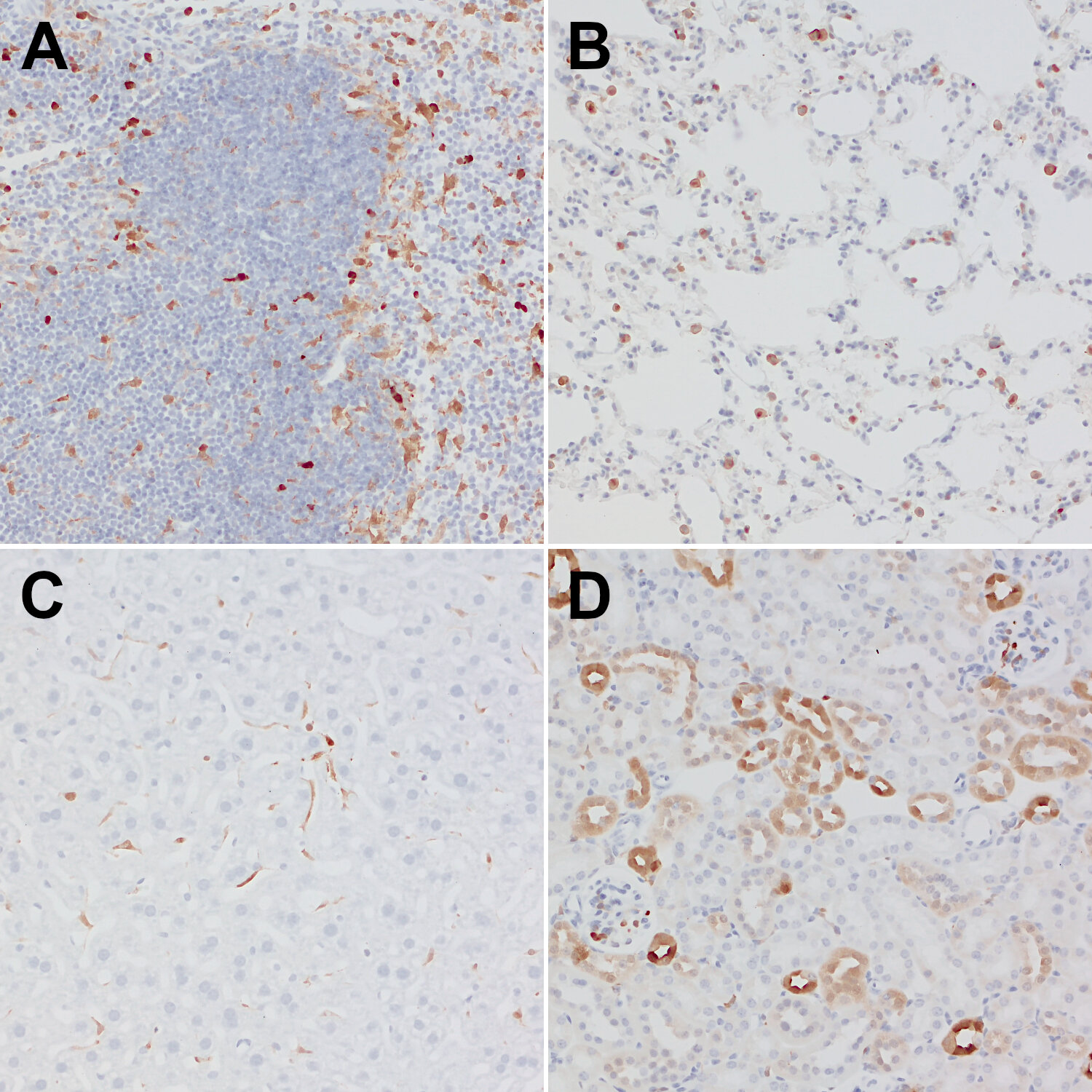 Galectin-3 (Gal-3, Mac-2) is a β-galactoside binding protein that is predominantly located in the cytoplasm and shuttles into the nucleus. In addition, it is secreted to the cell surface and into biological fluids. Depending on its localization, it exerts pleiotropic biological functions like cell growth, cell differentiation, inflammation, fibrogenesis, migration, apoptosis and host defense (1). It is also involved in cancer pathogenesis, proliferation and spreading of metastasis (2). Galectin-3 is highly expressed in the covering epithelia of the digestive tract and the urinary system (3) and plays important roles in the organization of renal and intestinal cells. Furthermore, Galectin-3 has been identified in a variety of other cell types including fibroblasts, keratinocytes, granulocytes, dendritic cells and macrophages (2). Galectin-3 is expressed by certain tissue-resident macrophages such as Kupffer cells in the liver, red pulp macrophages in the spleen and alveolar macrophages in the lung (3). In the brain, Galectin-3 is abundant in activated microglia but not expressed in resting cells. Following brain injury, Galectin-3 triggers anti-inflammatory properties of microglia (4). In Alzheimer’s disease, Gal-3 expression is strictly associated with microglial cell activation around Aβ plaques. In stroke Gal-3 was found to be expressed primarily in proinflammatory microglial cells (5).