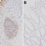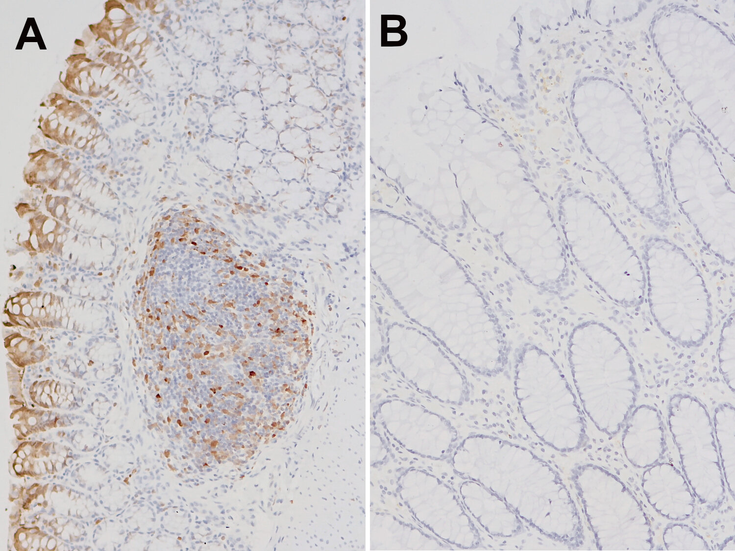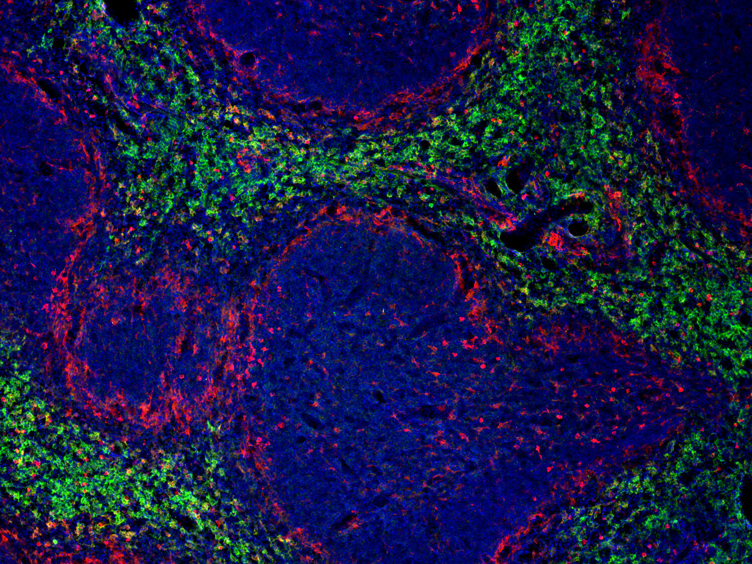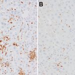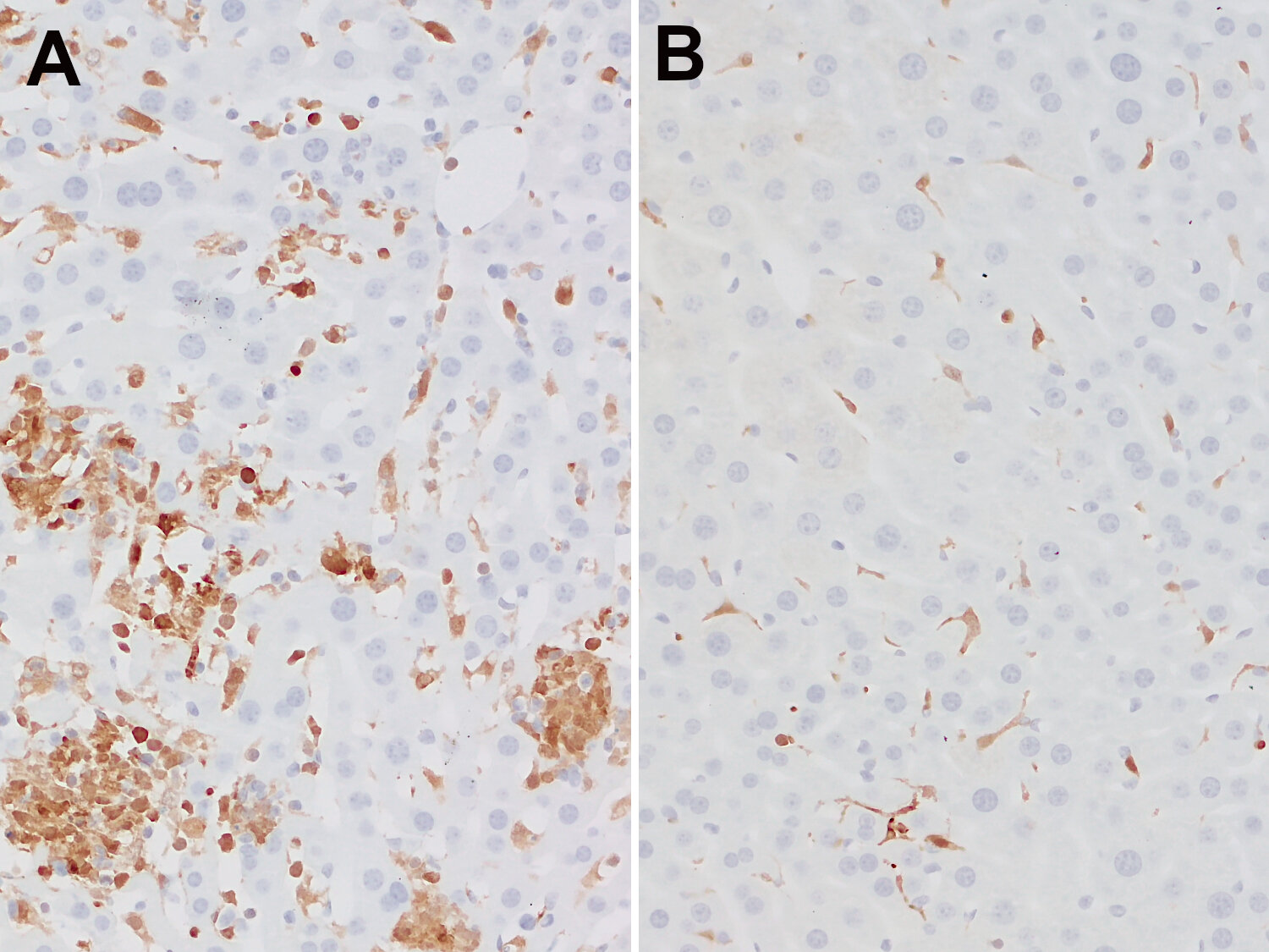 Galectin-3 (Gal-3, Mac-2) is a β-galactoside binding protein that is predominantly located in the cytoplasm and shuttles into the nucleus. In addition, it is secreted to the cell surface and into biological fluids. Depending on its localization, it exerts pleiotropic biological functions like cell growth, cell differentiation, inflammation, fibrogenesis, migration, apoptosis and host defense (1). It is also involved in cancer pathogenesis, proliferation and spreading of metastasis (2). Galectin-3 is highly expressed in the covering epithelia of the digestive tract and the urinary system (3) and plays important roles in the organization of renal and intestinal cells. Furthermore, Galectin-3 has been identified in a variety of other cell types including fibroblasts, keratinocytes, granulocytes, dendritic cells and macrophages (2). Galectin-3 is expressed by certain tissue-resident macrophages such as Kupffer cells in the liver, red pulp macrophages in the spleen and alveolar macrophages in the lung (3). In the brain, Galectin-3 is abundant in activated microglia but not expressed in resting cells. Following brain injury, Galectin-3 triggers anti-inflammatory properties of microglia (4). In Alzheimer’s disease, Gal-3 expression is strictly associated with microglial cell activation around Aβ plaques. In stroke Gal-3 was found to be expressed primarily in proinflammatory microglial cells (5).